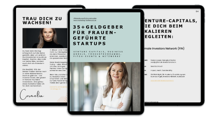 Mit meiner Liste zeige ich dir den Shortcut zu Kapitalgebern, die gezielt nach Gründerinnen suchen. Damit dein Wachstum kein Zufall bleibt.